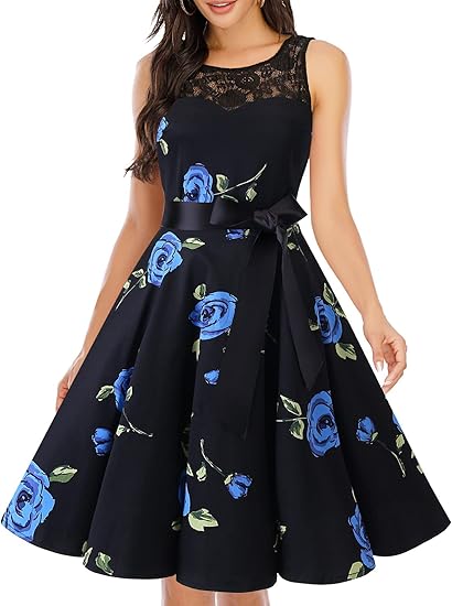 - Style: Women's 1950s vintage audrey hepburn style rockabilly pinup sleeveless polka dot floral print cocktail swing party dress.